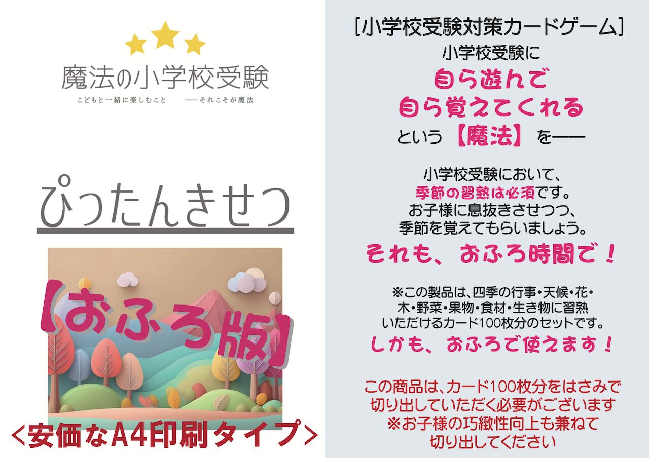 ぴったんきせつ【おふろ版】<安価なA4印刷タイプ> ⋯季節習熟カードゲーム